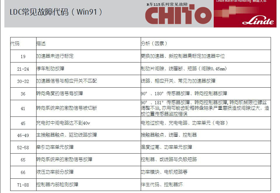 林德叉車R系列故障代碼
