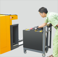 這是一款靈活多變的車,它結合了搬運車和堆高車的雙重功能,一次性搬運兩個托盤,大大調高了生産效率。在小小的空間也能靈活操作,是工廠、超市等場所貨物搬運和堆垛的理想選