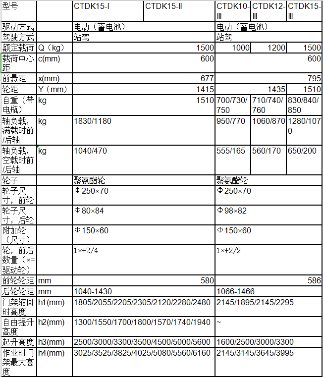 載重量1.0噸,1.2噸,1.5噸,起升高度從1.6米到5.6米,配置高低均由您根據工況任意選擇,滿足不同需求。