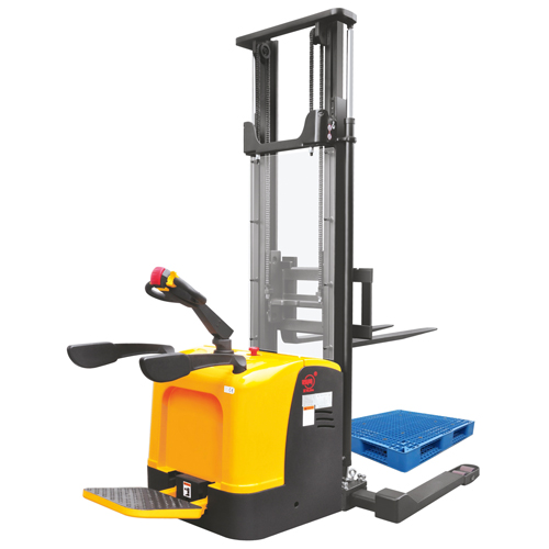 ·CTDK15站駕式寬腿堆垛車采用寬腿車架,鍛打式貨叉設計,貨叉寬度可調,使用各種托盤作業,