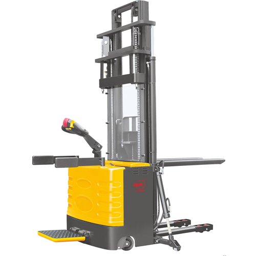 ■承載能力可達1噸。站人平台起升高度1.2米。方便高層貨架貨物的裝卸和揀選工作。站人平台前部配有小置物架可承載60kg左右的輕便貨物。EPS電子轉向系統加上自主研發設計的轉向舵