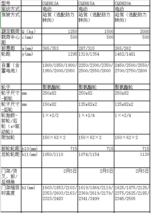 * 表示必填采購:貨叉前移式堆垛車CQDH12A/15A/20A