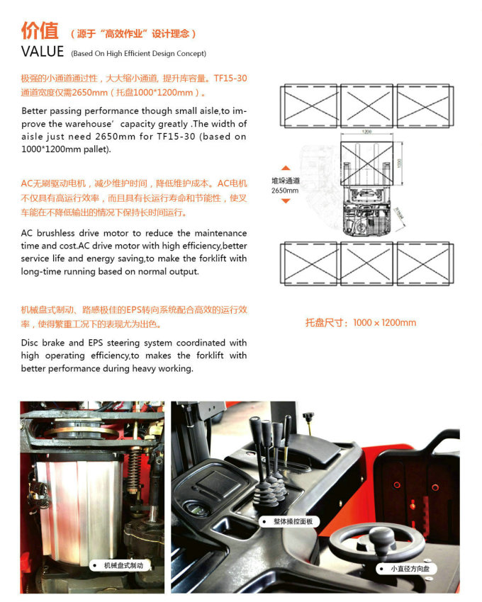 3. 全系标配電動助力轉向,采用小直徑方向盤,轉向力輕,使駕駛者的操作靈活性能大大提高。同時相對于液壓轉向而言,能夠有效的降低能耗和提升起升速度。