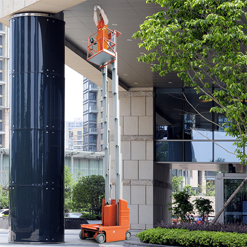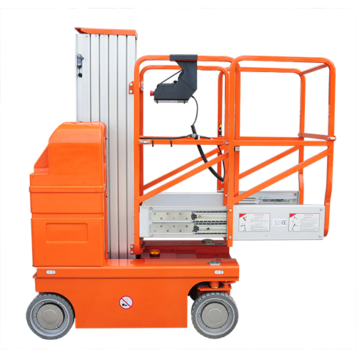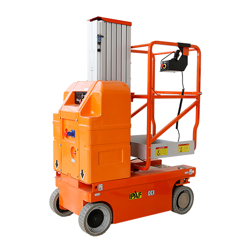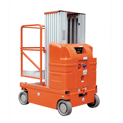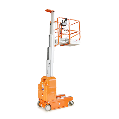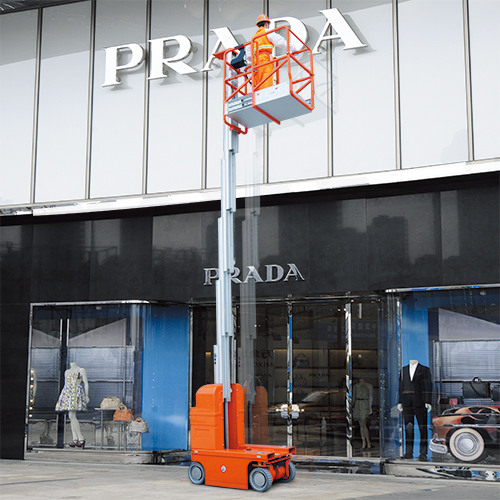 自行走鋁合金升降平台 主要規格 ● 工作高度:9.50m和8.00m ● 安全載荷:125kg和150kg 重要特色 ●自動坑洞保護 ●緊急下降系統 ●油管防爆系統 ●延伸平台
